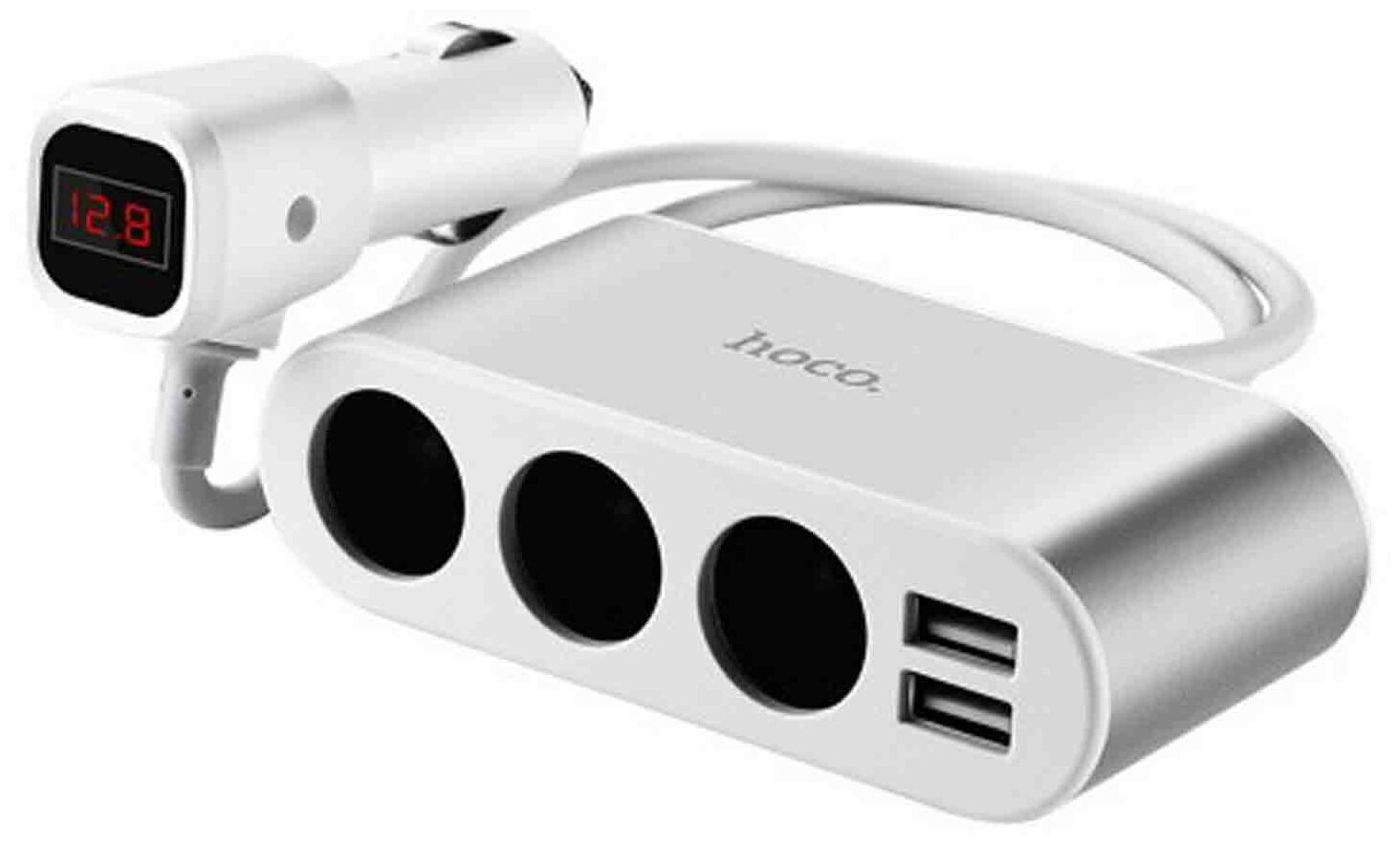 10 цен на Разветвитель прикуривателя на 2 USB+ 3 прикуривателя (display), Z13, Hoco, белый