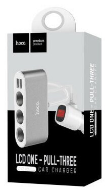 Разветвитель прикуривателя HOCO Z13 + 2USB с цифровым дисплеем, 2,1A, серебристый