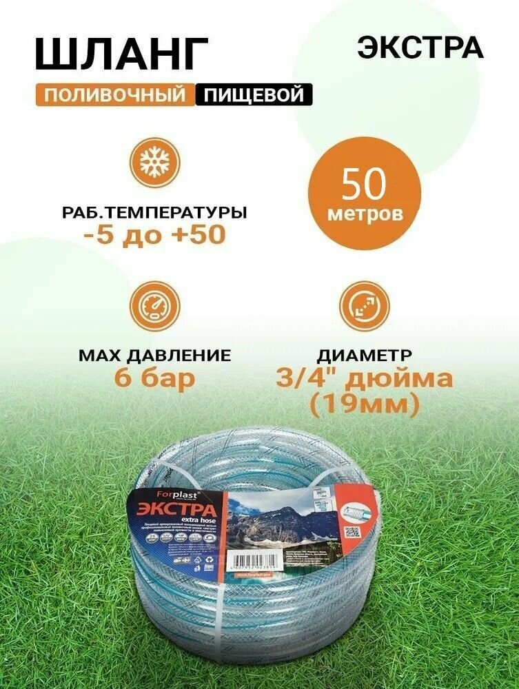Шланг поливочный армированный ПВХ Forplast экстра пищевой 3/4" 50м информация: