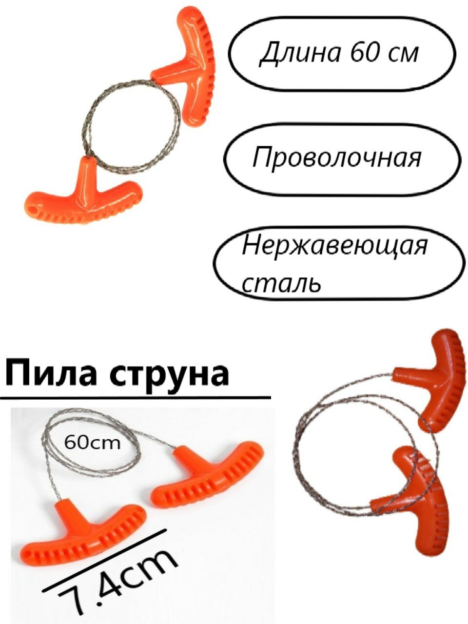 10 цен на Пила-струна с пластиковыми ручками, 70см микс