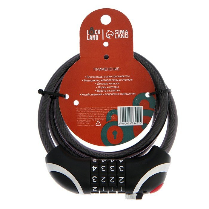 LOCKLAND Замок навесной велосипедный LOCKLAND, кодовый, с подсветкой 10 х 1000 мм информация: