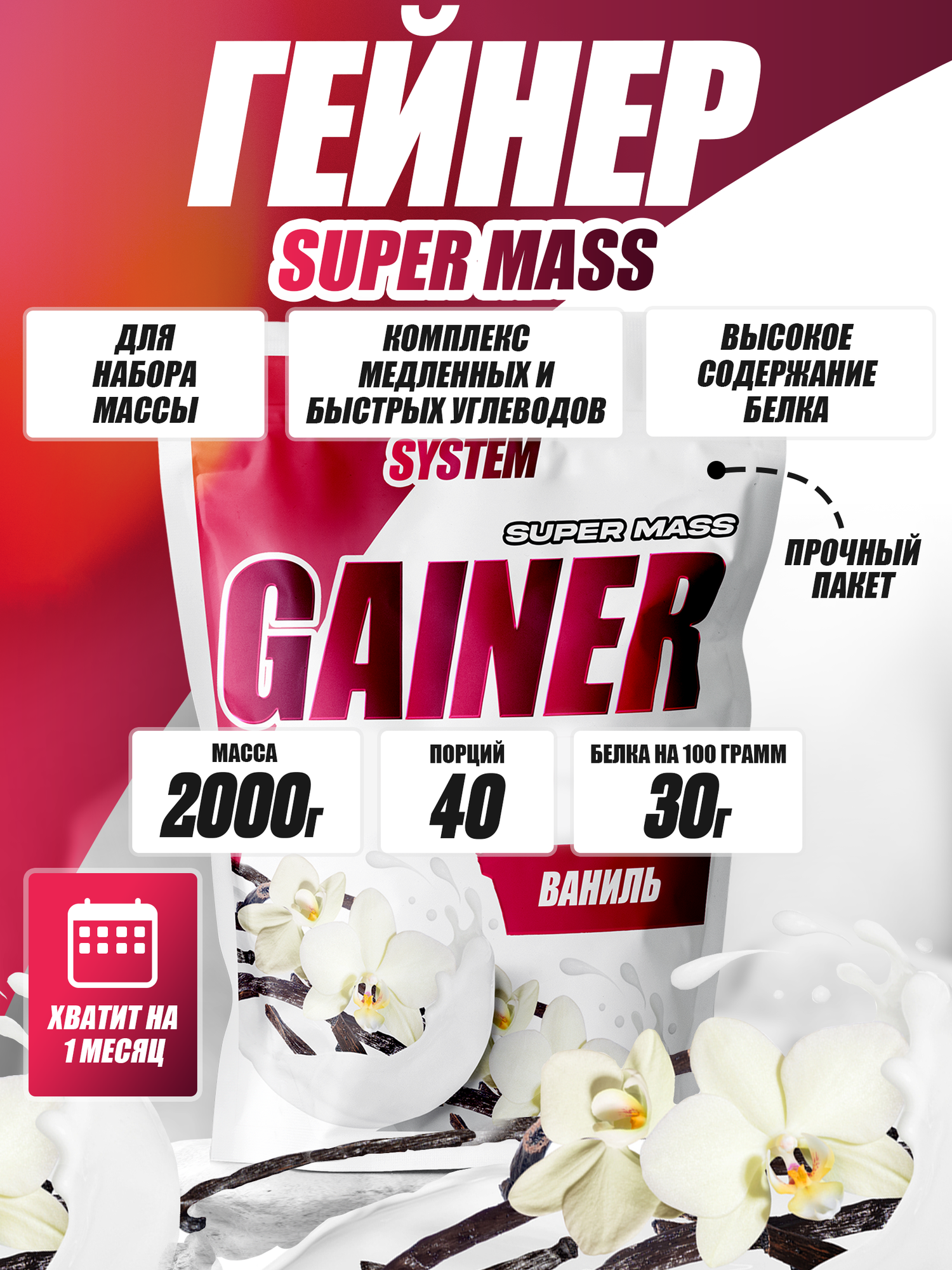 Organic System Гейнер высокоуглеводный со вкусом Ваниль 2000г информация: