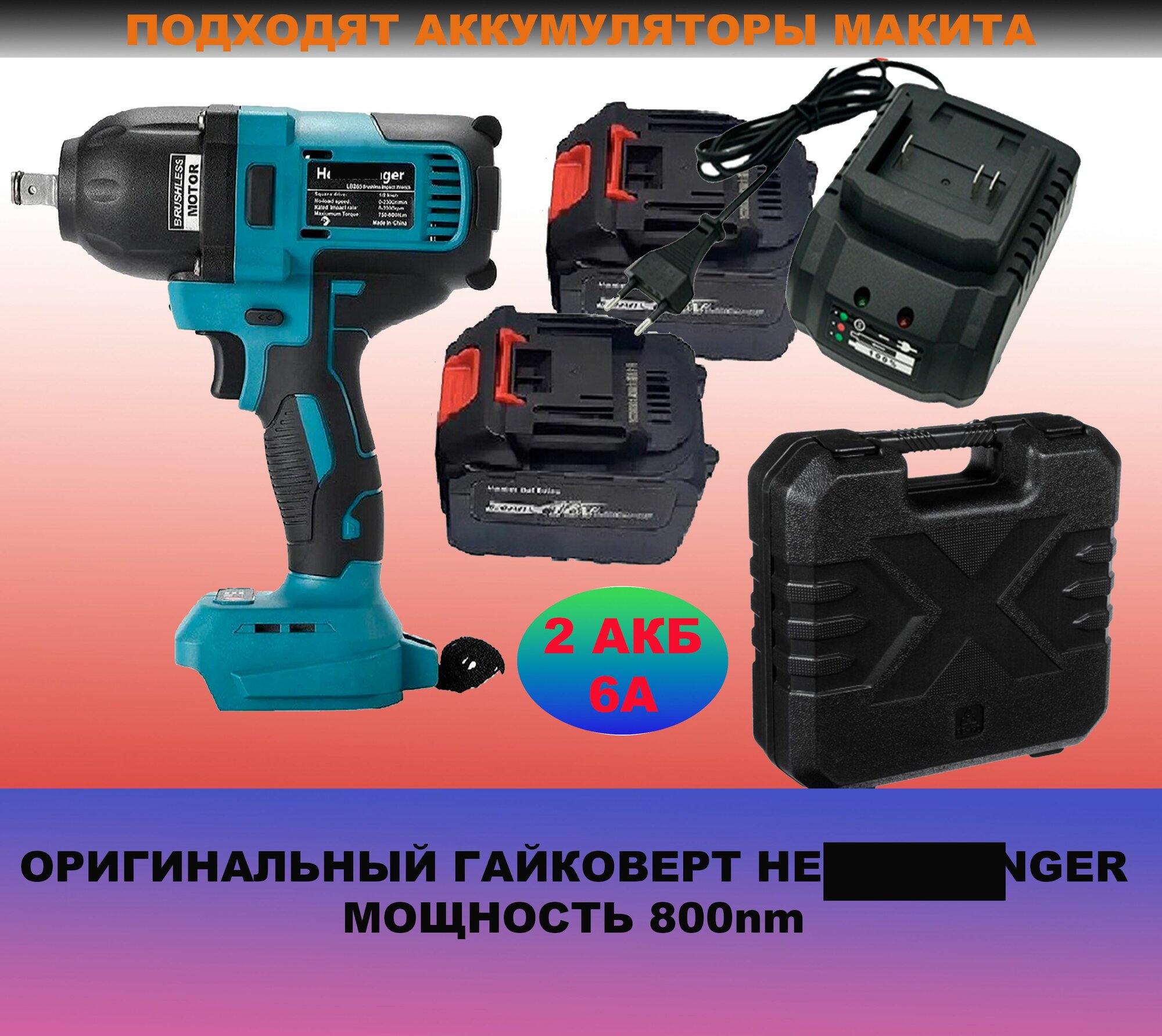 Бесщеточный аккумуляторный ударный гайковерт Heimerdinger 1/2 дюйма с питанием от литиевой батареи 800 Нм с двумя батареями 18 В 6,0 Ач информация: