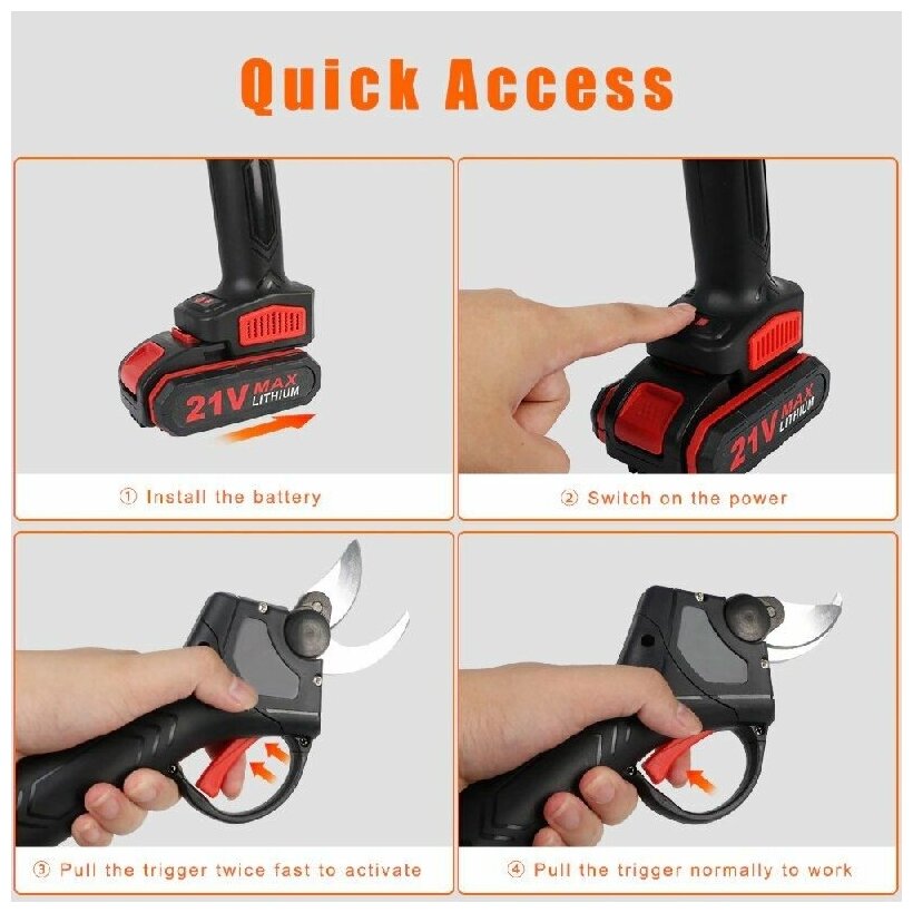 Аккумуляторный садовый секатор 21V (1.5Ah, 2 акб(Li-Ion), +кейс, черный) "BEEZMOTO" информация: