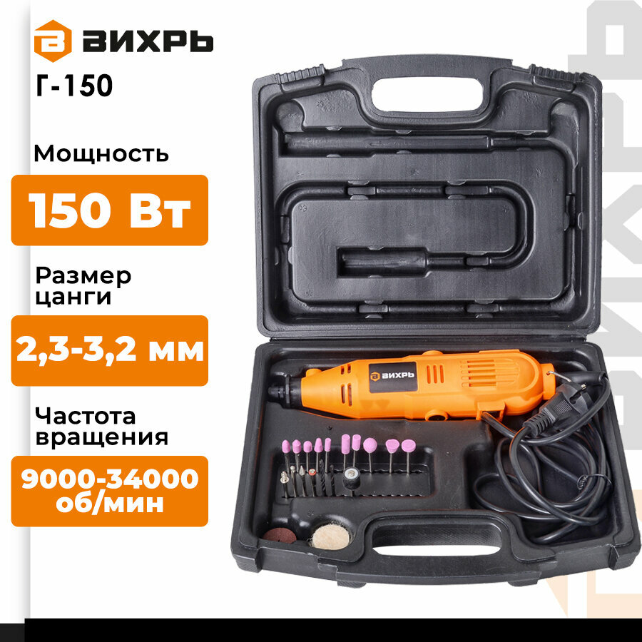 Гравер электрический вихрь Г-150 с набором насадок / 150 Вт