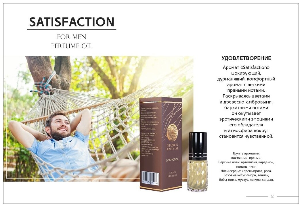 Духи на основе масла «Satisfaction» (Удовлетворение) Difusion Beauty Lab, 5 мл, мужские информация: