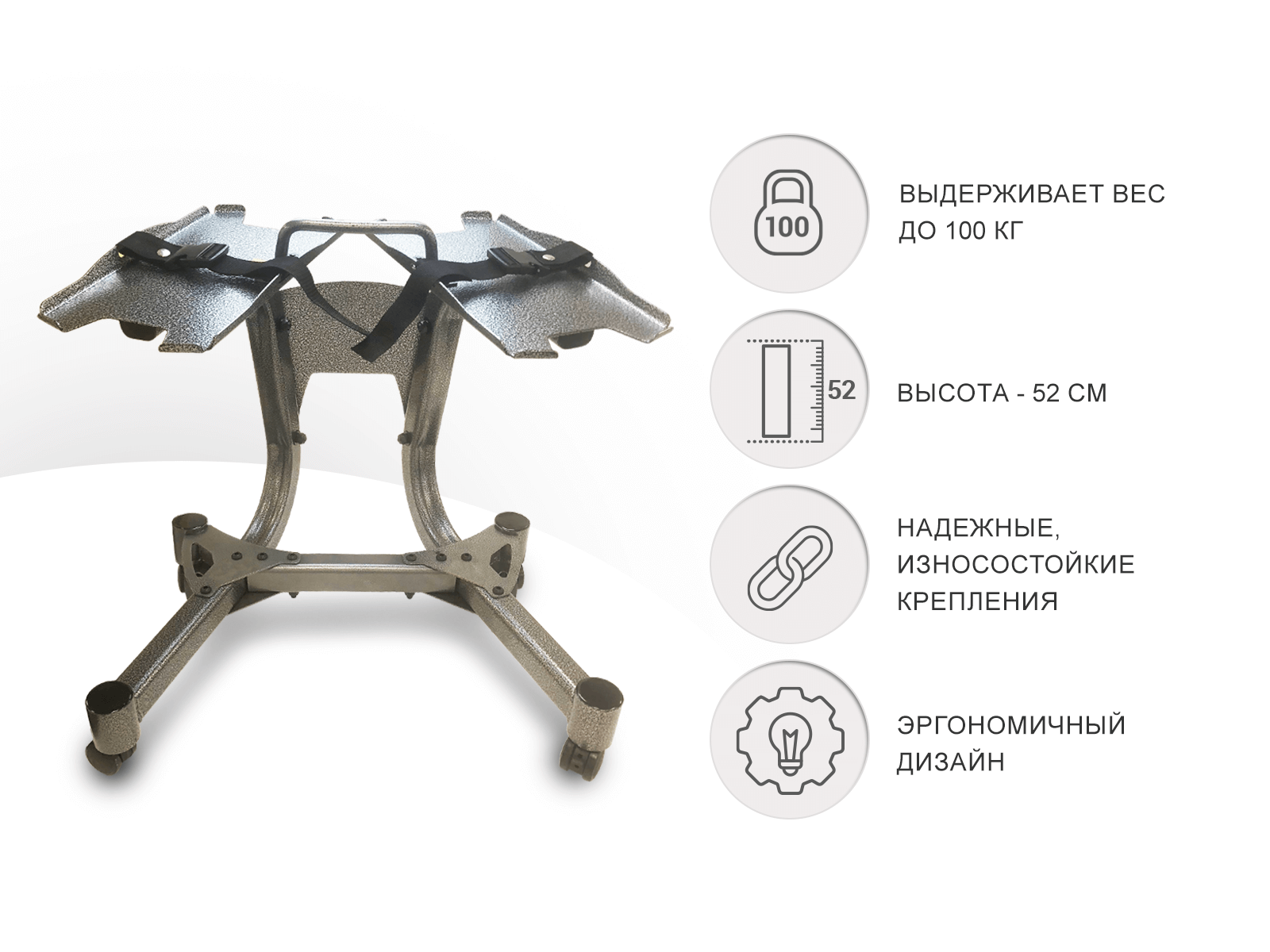 | Дополнительная информация | Гарантия: 2 года. Вместимость: 2 гантели весом 24 или 40 кг. |
