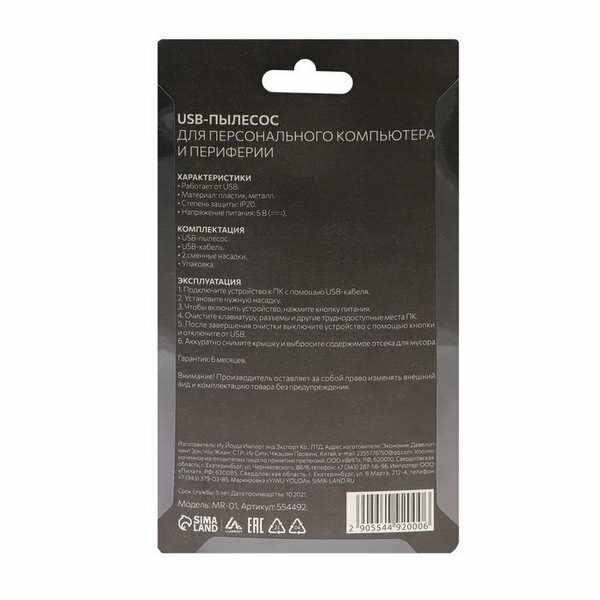 USB Пылесос Luazon MR-01, для ПК, с насадками, USB, зелёный информация: