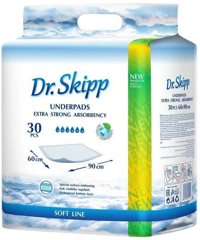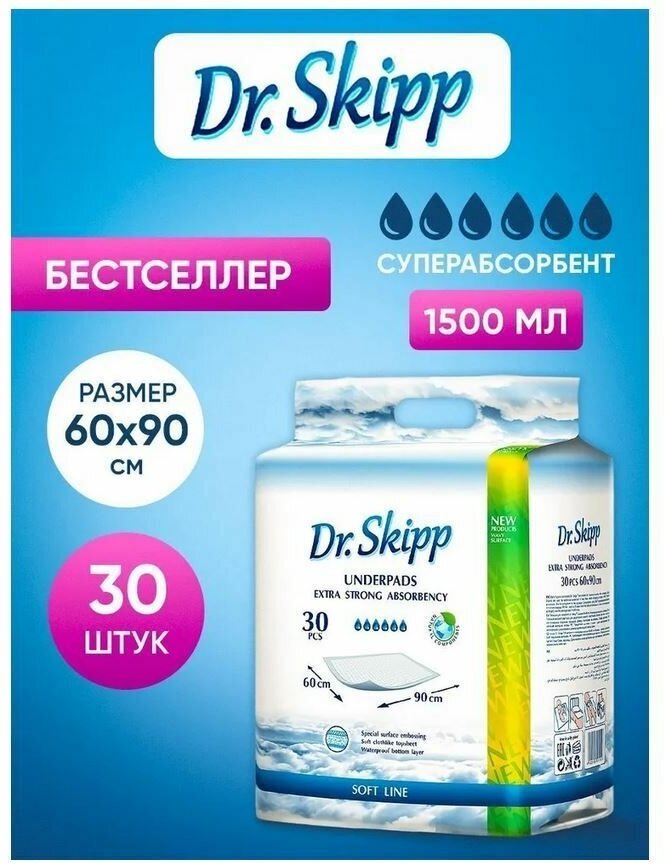 Пеленки гигиенические супервпитывающие Dr.Skipp 60x90 см, 30 шт 1 803 ₽