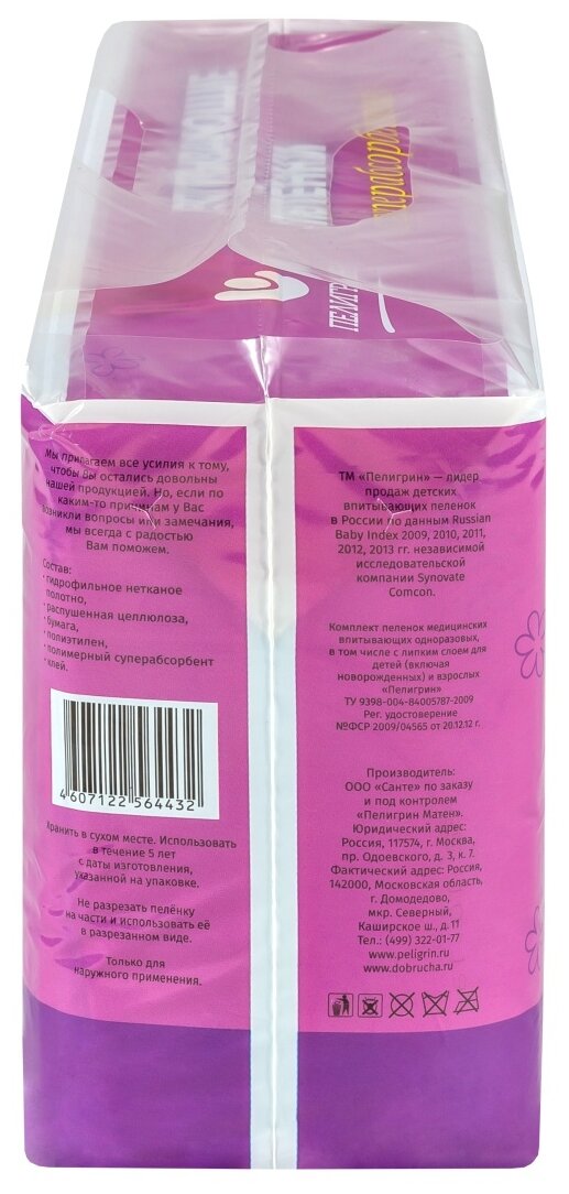 Одноразовые пеленки Пелигрин с суперабсорбентом 60х60 см. 30 шт. информация: