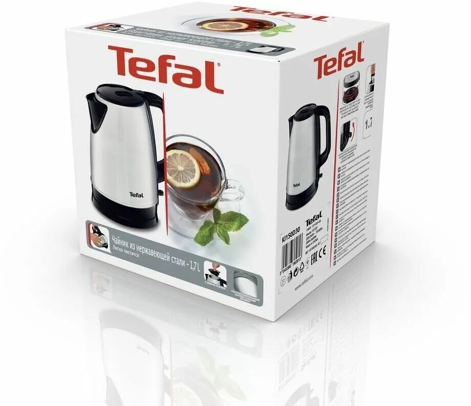 Чайник электрический Tefal KI150D30, металл, 1.7 л, 2400 Вт, серебристо-чёрный