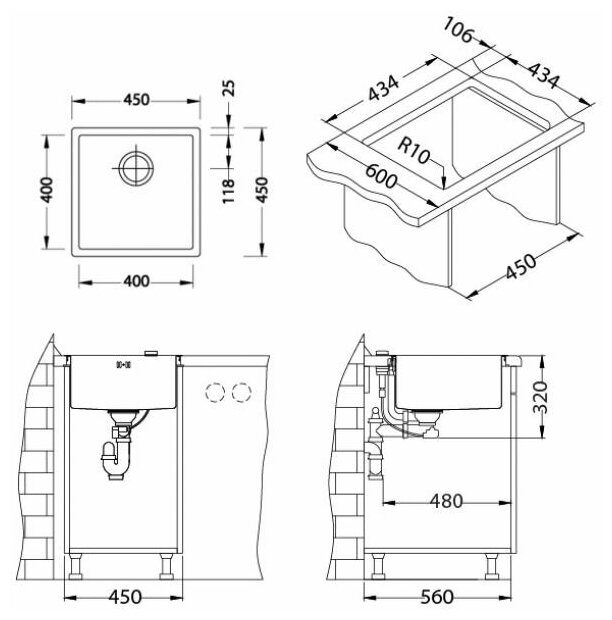 Мойка QUADRIX MONARCH 30 ANTHRACITE 450X450X200 в компл. с выпуском без сифона,