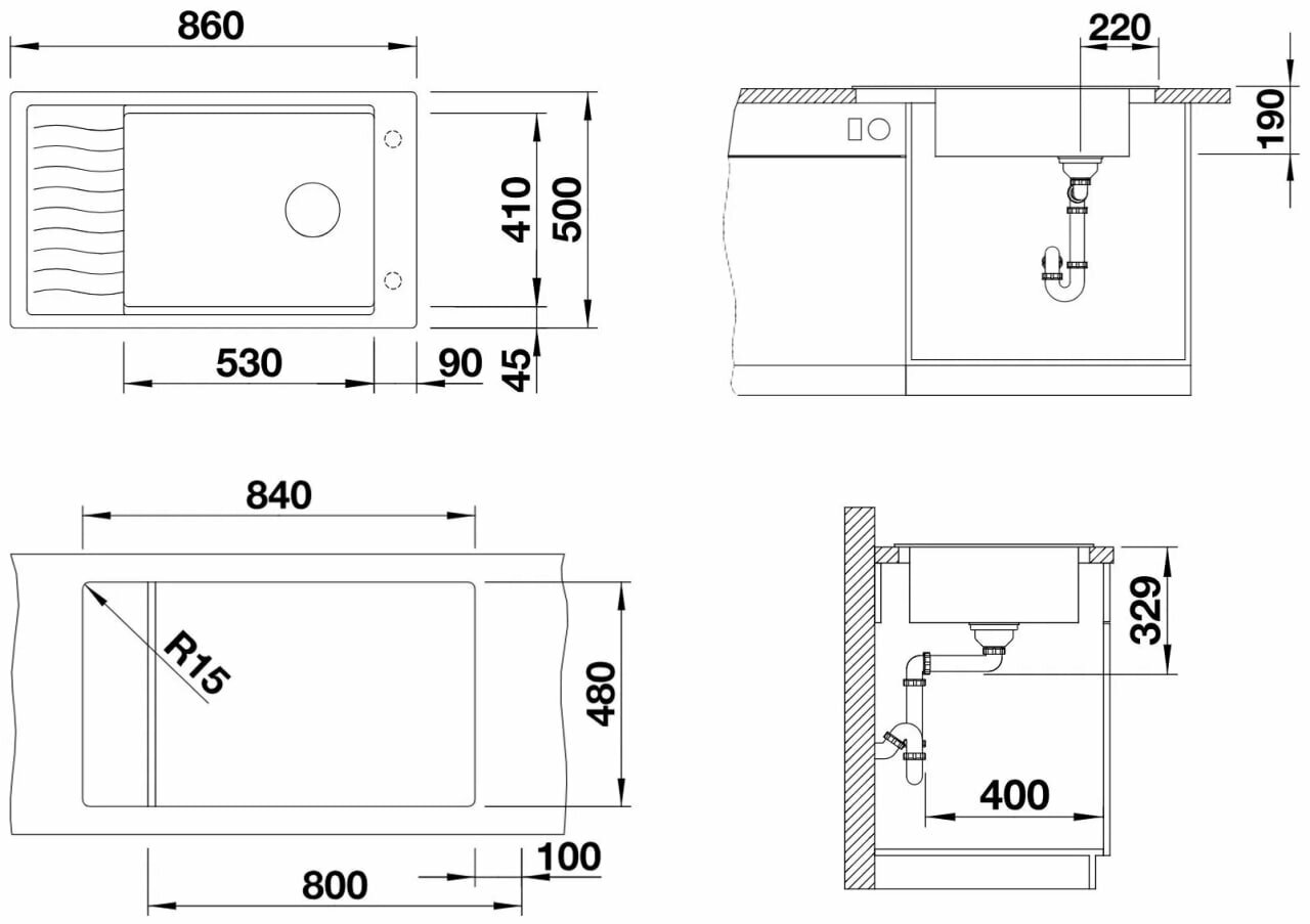 Кухонная мойка под столешницу BLANCO ETAGON 500-U