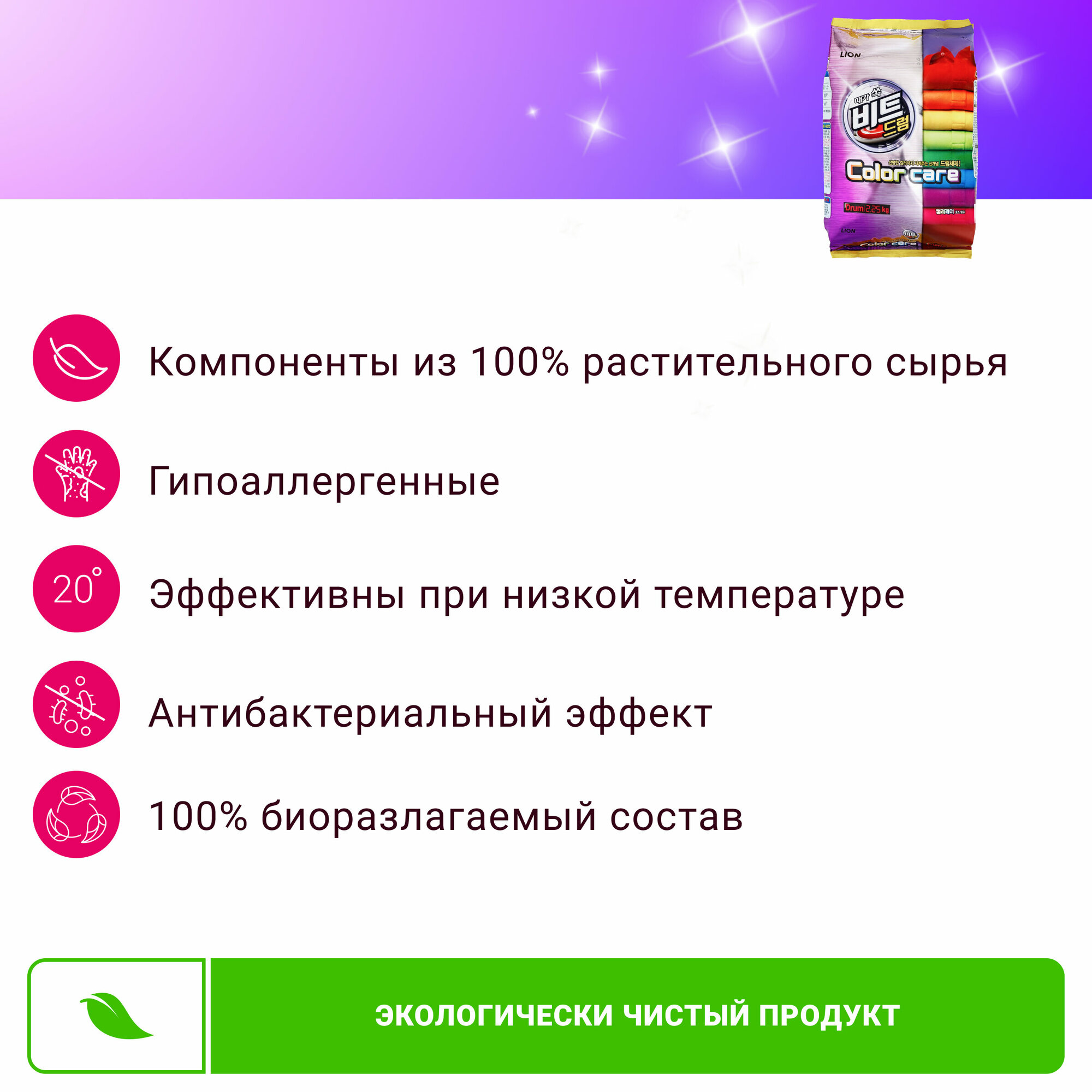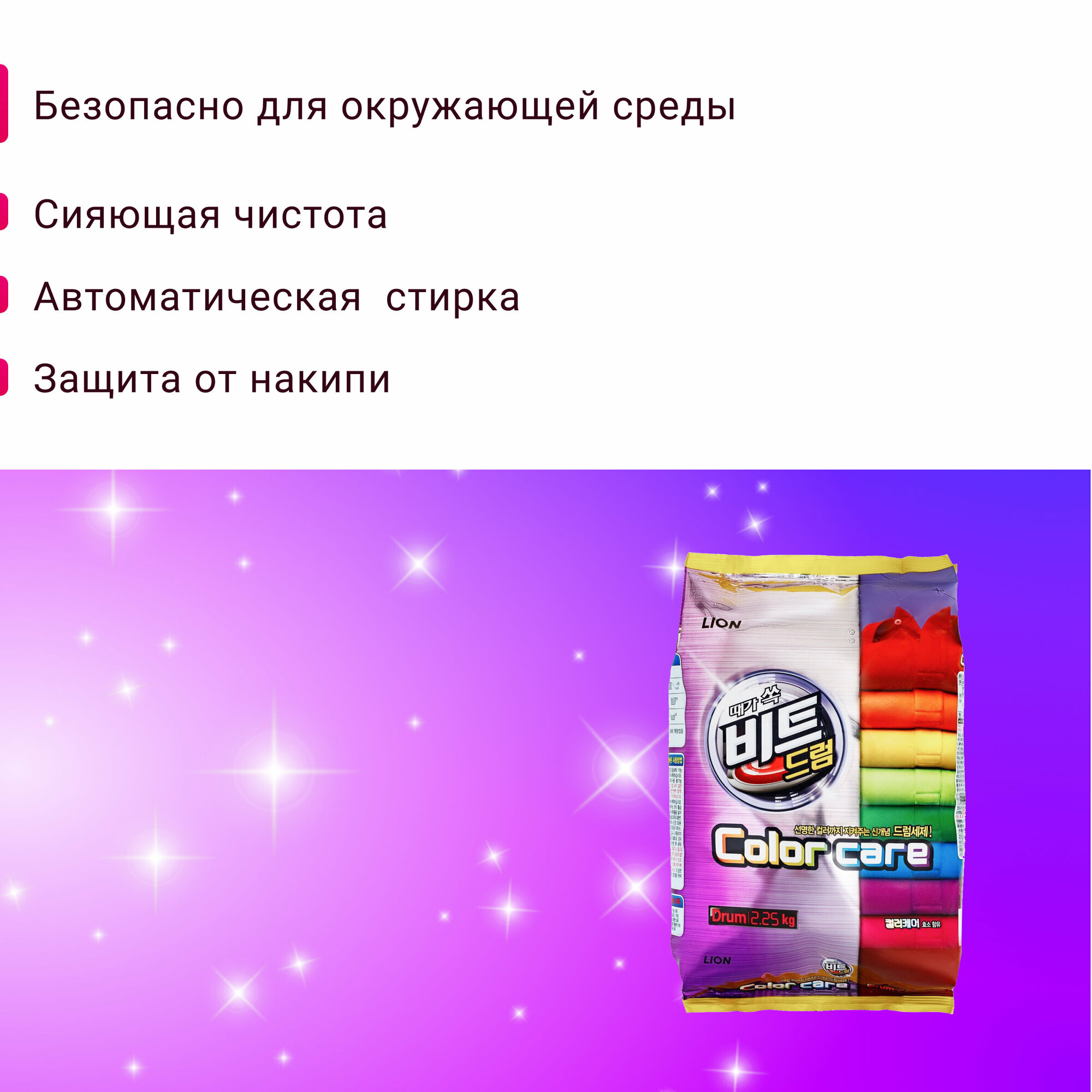 Стиральный порошок CJ Lion "Beat Drum Color" автомат для цветного белья, 2,25кг информация: