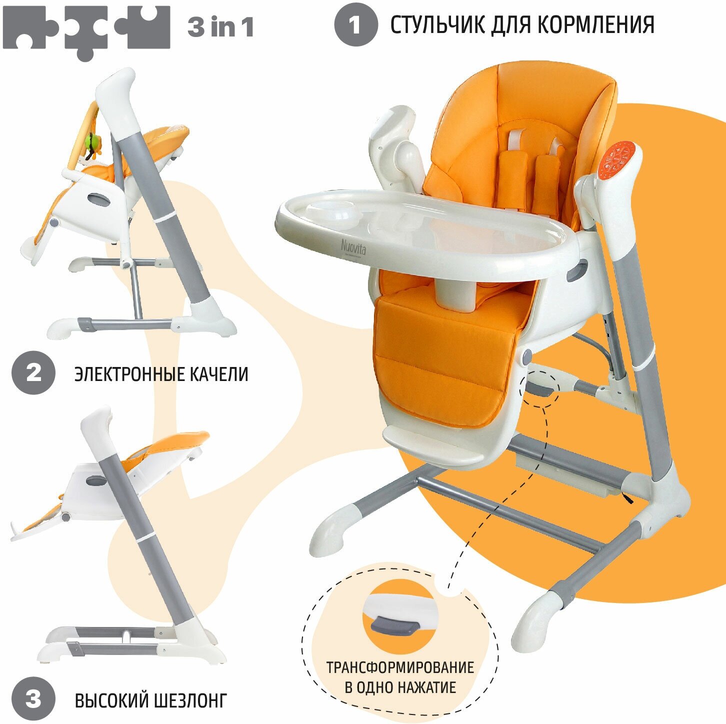 Стульчик для кормления 3в1 Nuovita Unico детский/трансформер/шезлонг (Arancione / Оранжевый) информация:
