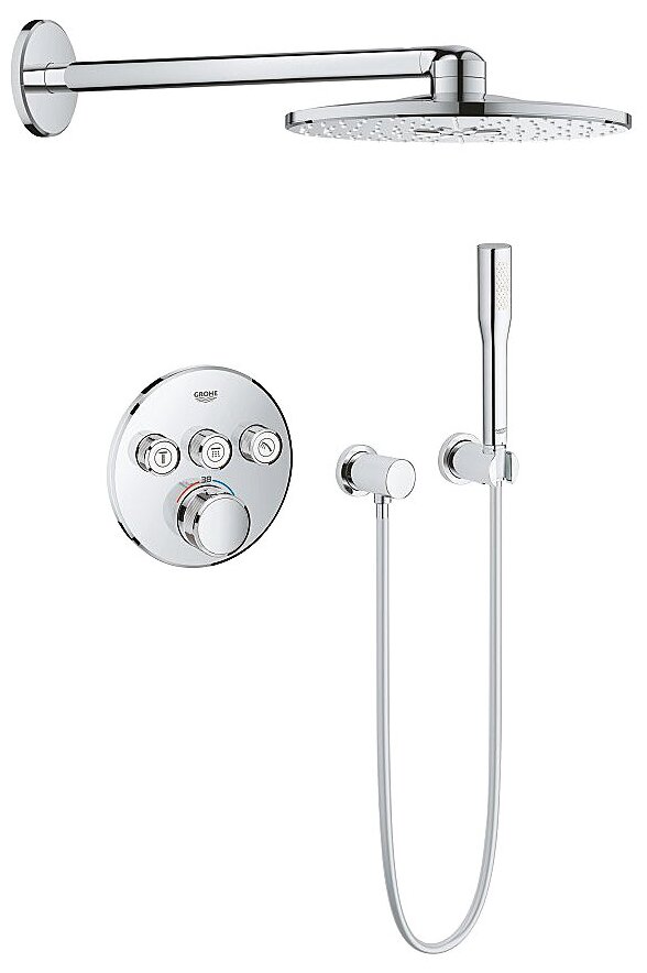 Отзывы на Набор для комплектации душа GROHE Grohtherm SmartControl: встраив. термостат с 3 кнопками упр. (круглая розетка) (29121), SmartBox (35 600 000), верхний душ Rainshower 310 кругл. (26475) с кронш. и верхней встр. частью, ручн.душ Euphoria Cosmo Stick (2736