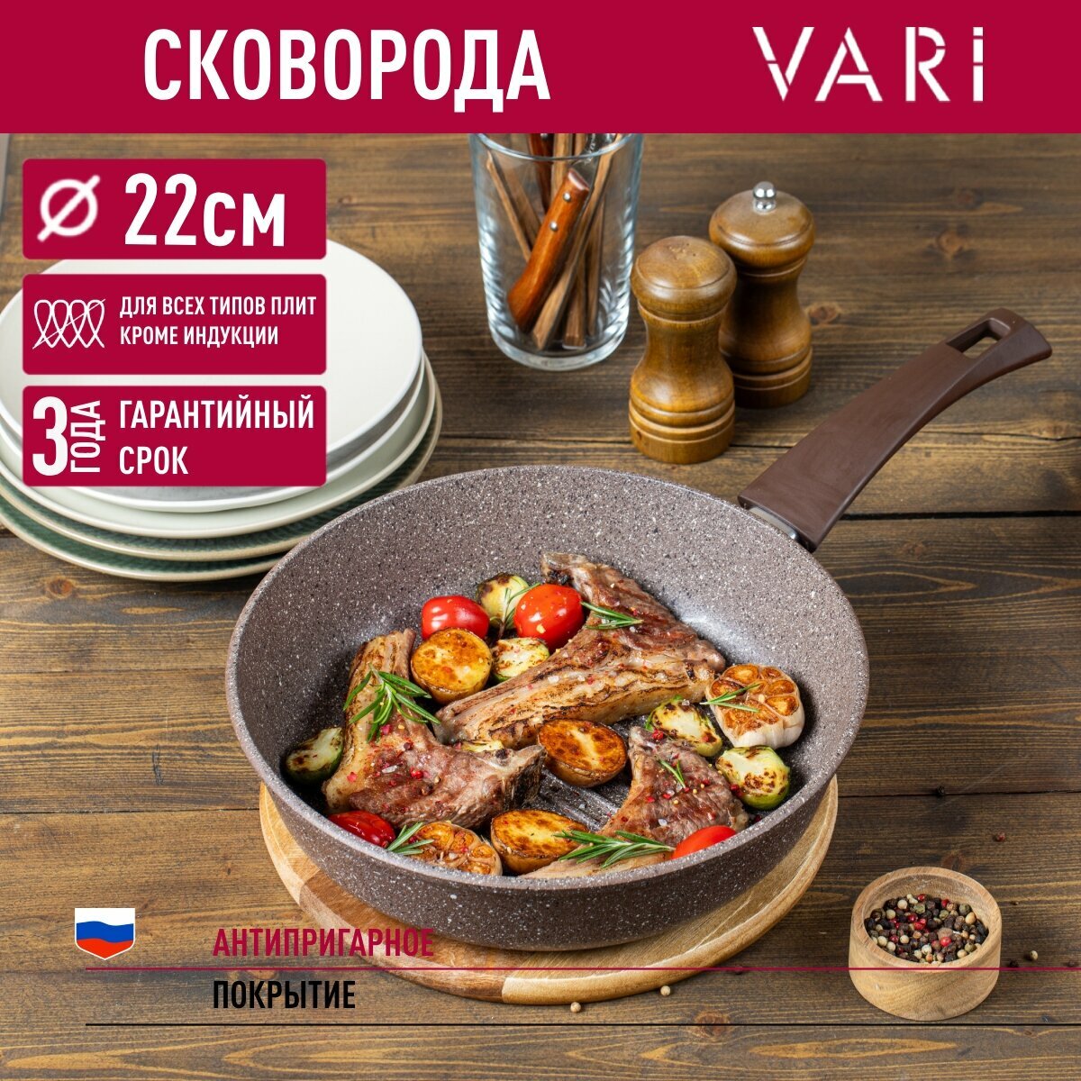 Сковорода VARI BR31122 коричневый Pietra теплый гранит с ручкой soft-touch 22 см