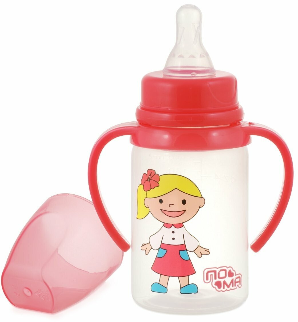 Пома Бутылочка 140 мл.,Красная, с ручками, 1шт. (ПП, силикон, средний поток) 4+/12