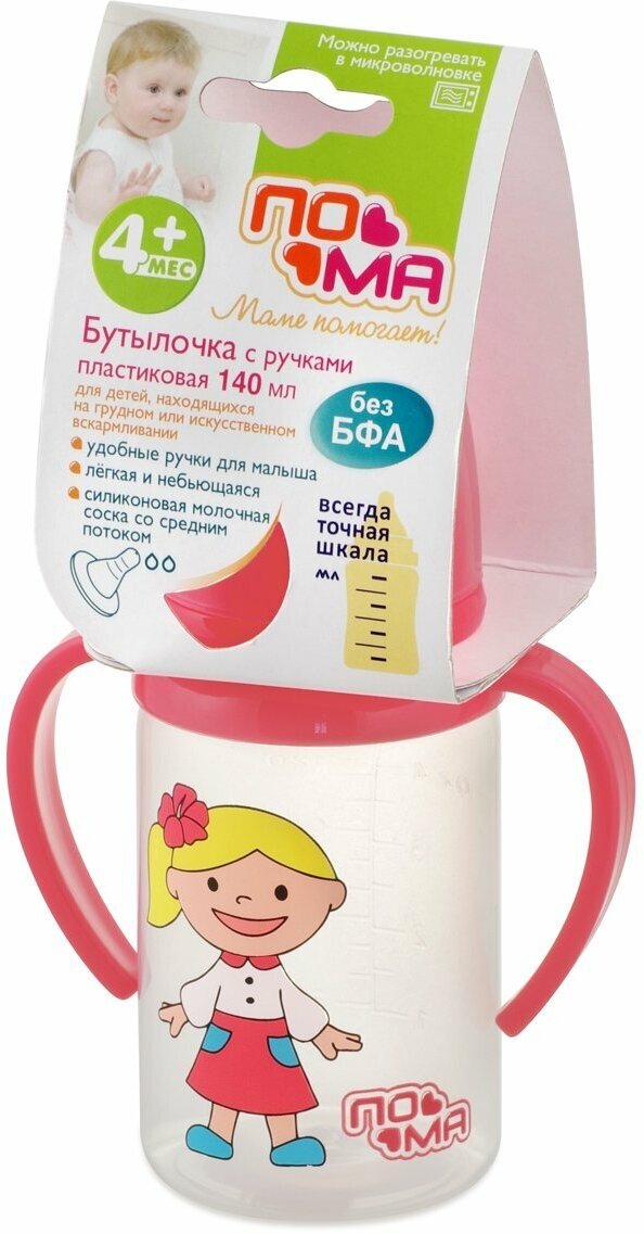 Пома 2910 Бутылочка маленькая с ручками 140мл 0+ ПП УТ-00031544 366501