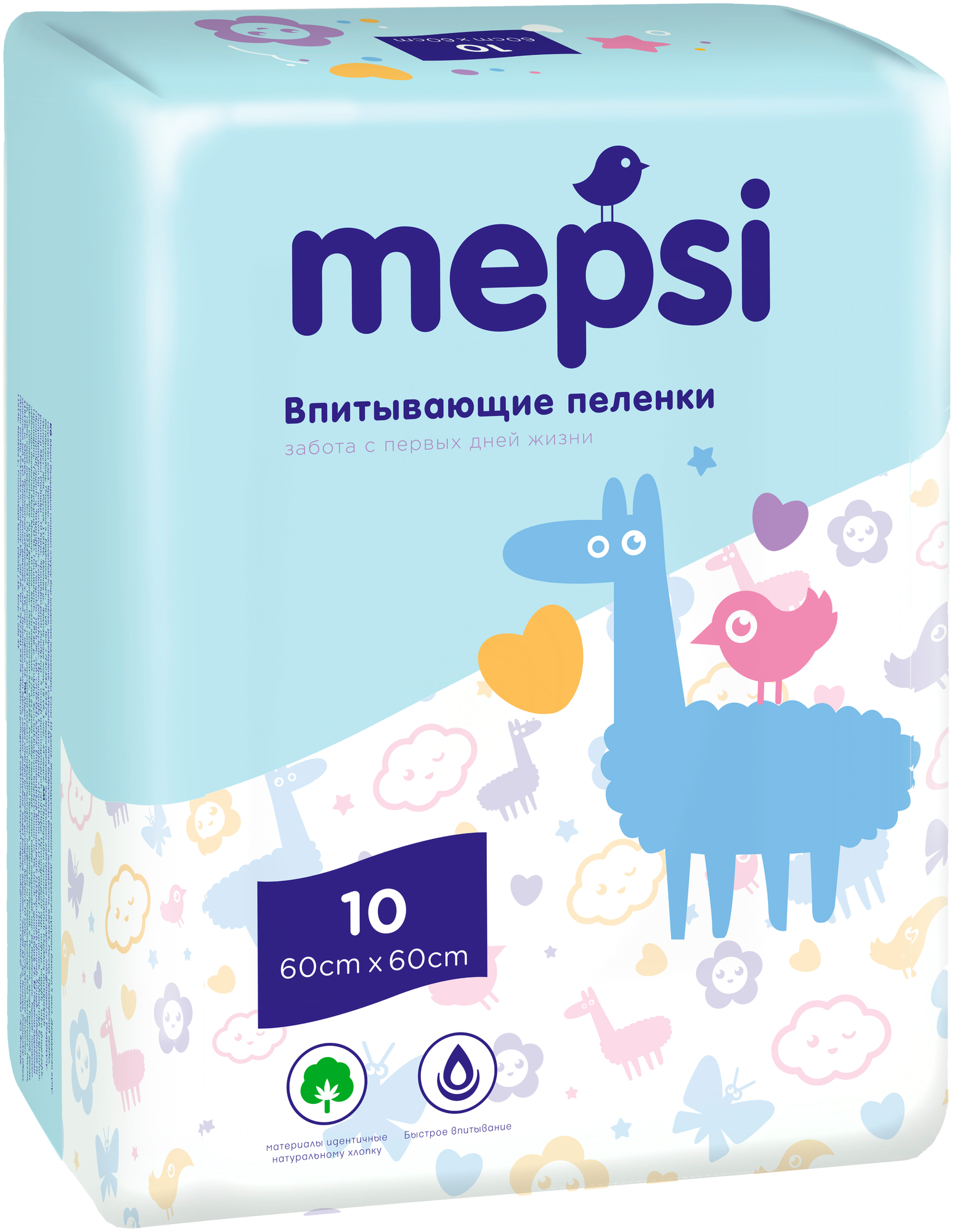 Пеленки детские впитывающие MEPSI, 60х60, 10 шт. 368 ₽