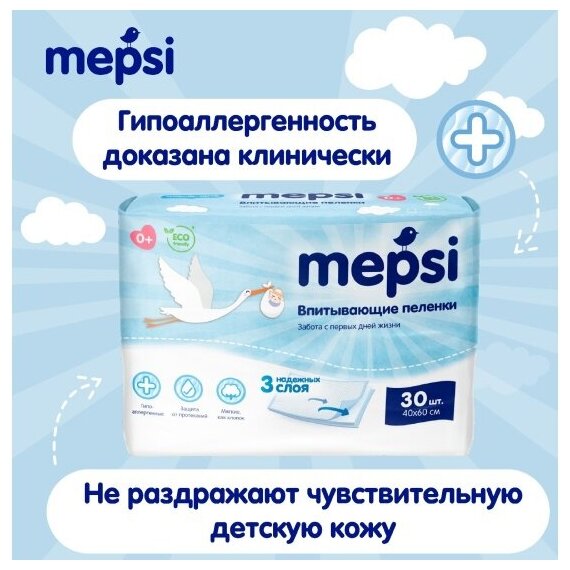 Mepsi Пелёнки детские впитывающие 60 60 30шт