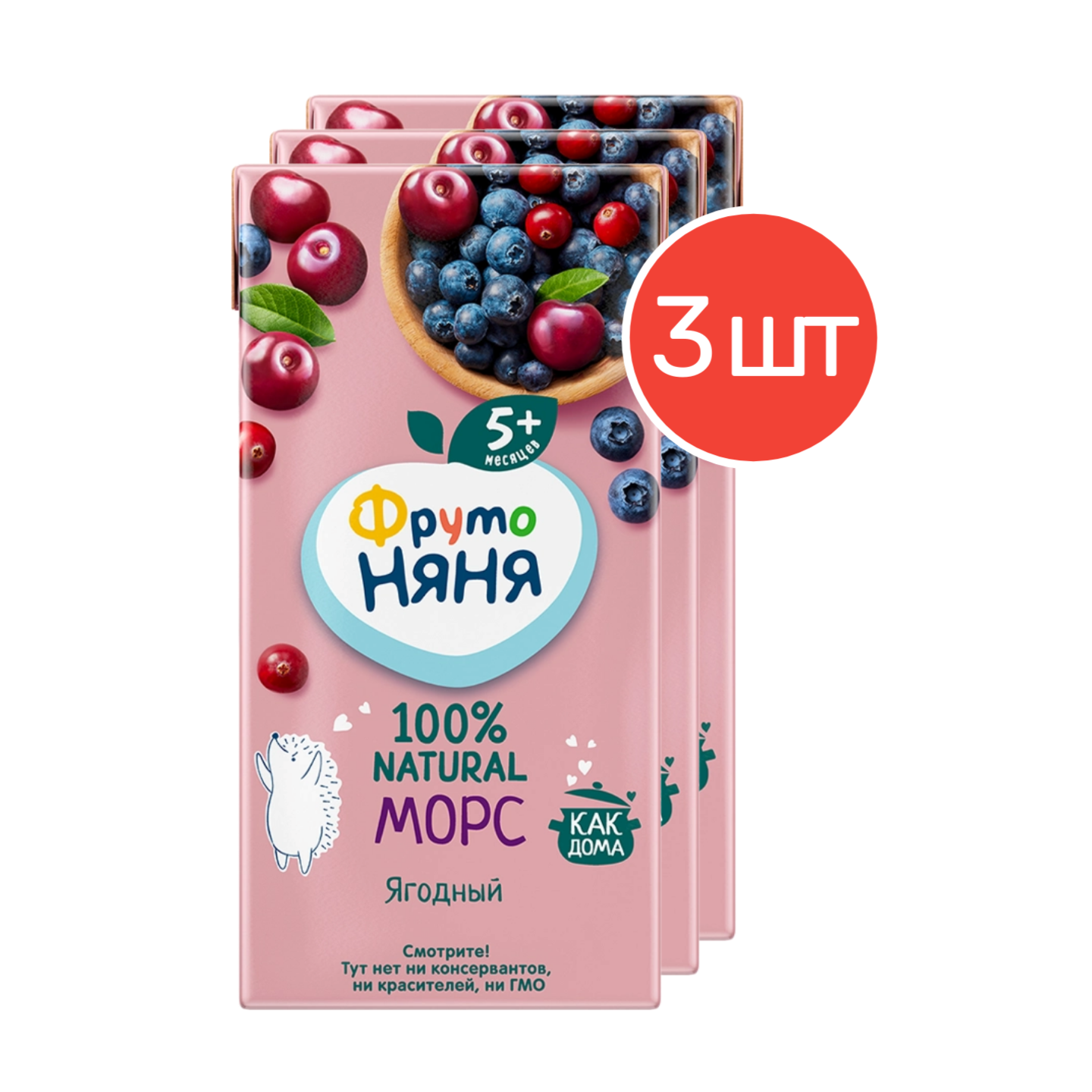 Морс ФрутоНяня из клюквы, черники и вишни от 3 лет 0,5 л 3 шт информация: