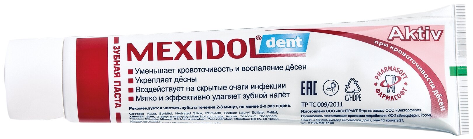 Зубная паста MEXIDOL Dent Aktiv 65г (Мексидол дент Актив) с противовоспалительным эффектом для ежедневной гигиены и комплексного ухода за полостью рта