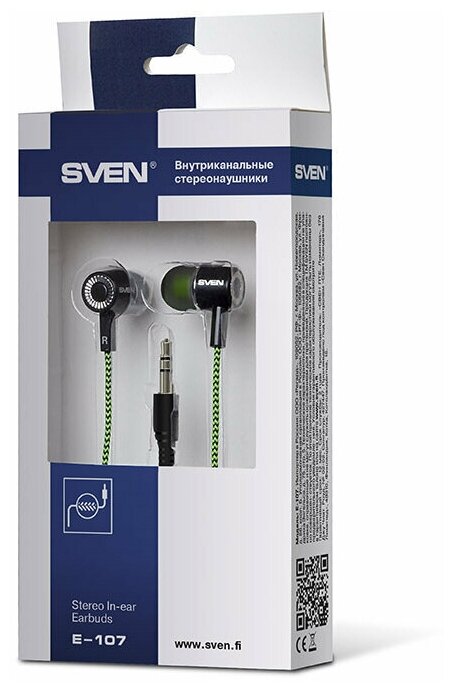Наушники SVEN E-107, черный-зеленый, внутриканальные стерео 1573802 SV-015404