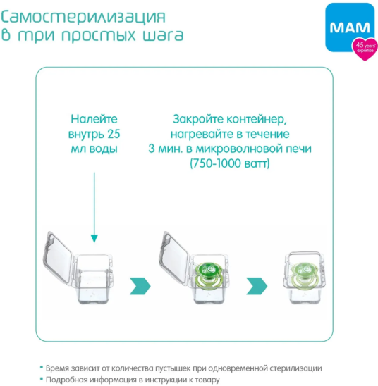 Соска-пустышка из латекса MAM Original контейнер для стерилизации 6+ мес 2 шт информация: