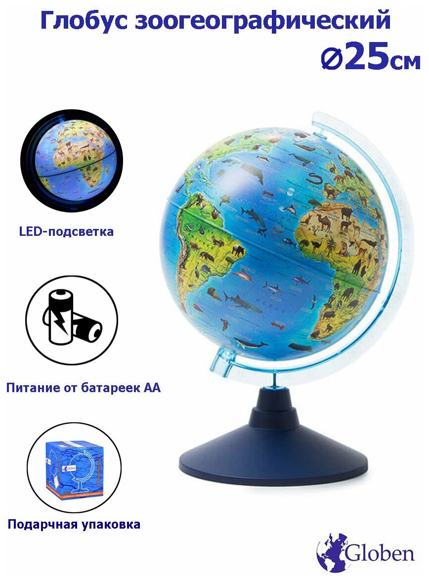10 цен на Глобус Земли зоологический с подсветкой от батареек d=25 см