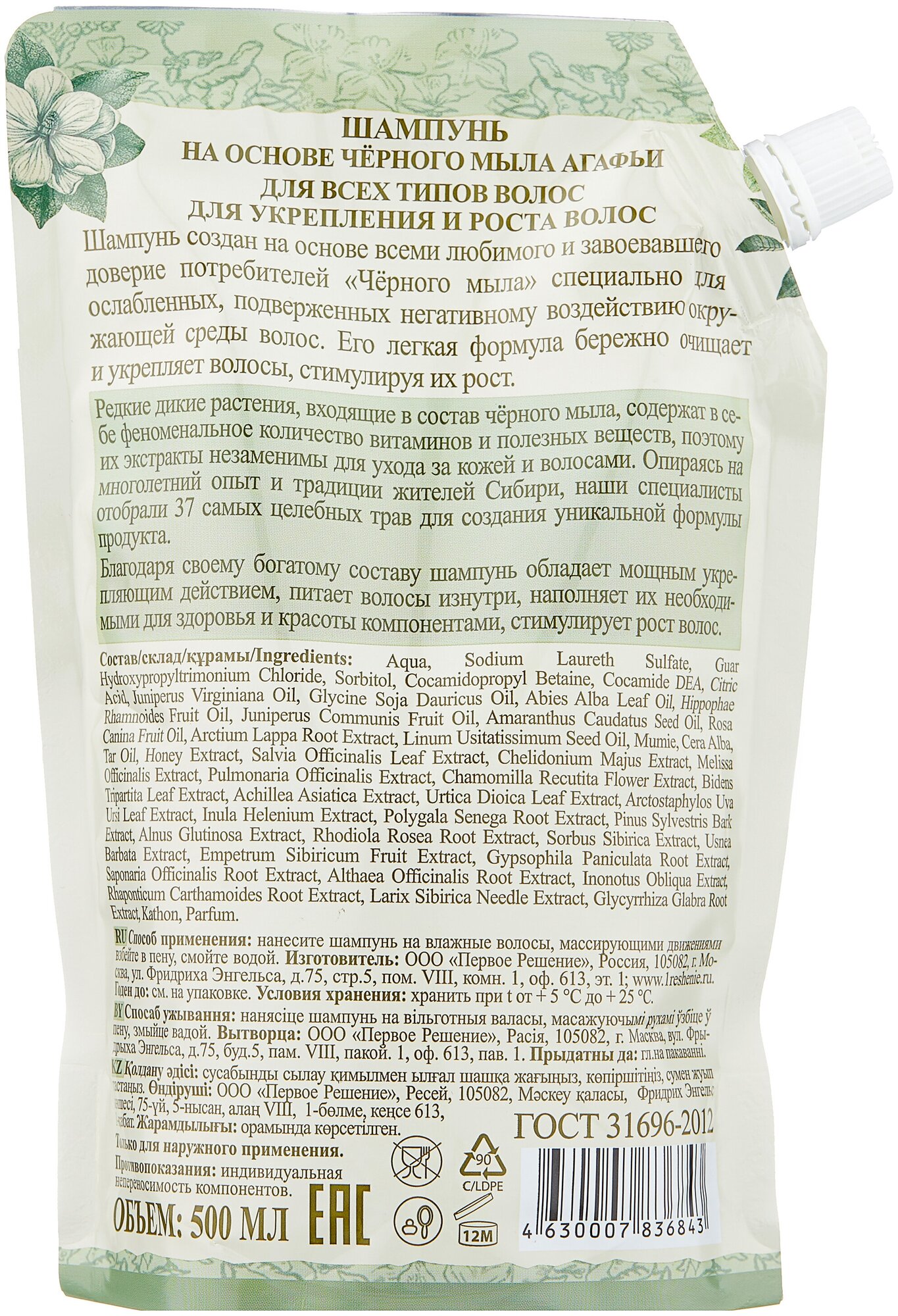 Травы и сборы на черном мыле Агафьи Шампунь для укрепления и роста волос дой-пак 500 мл