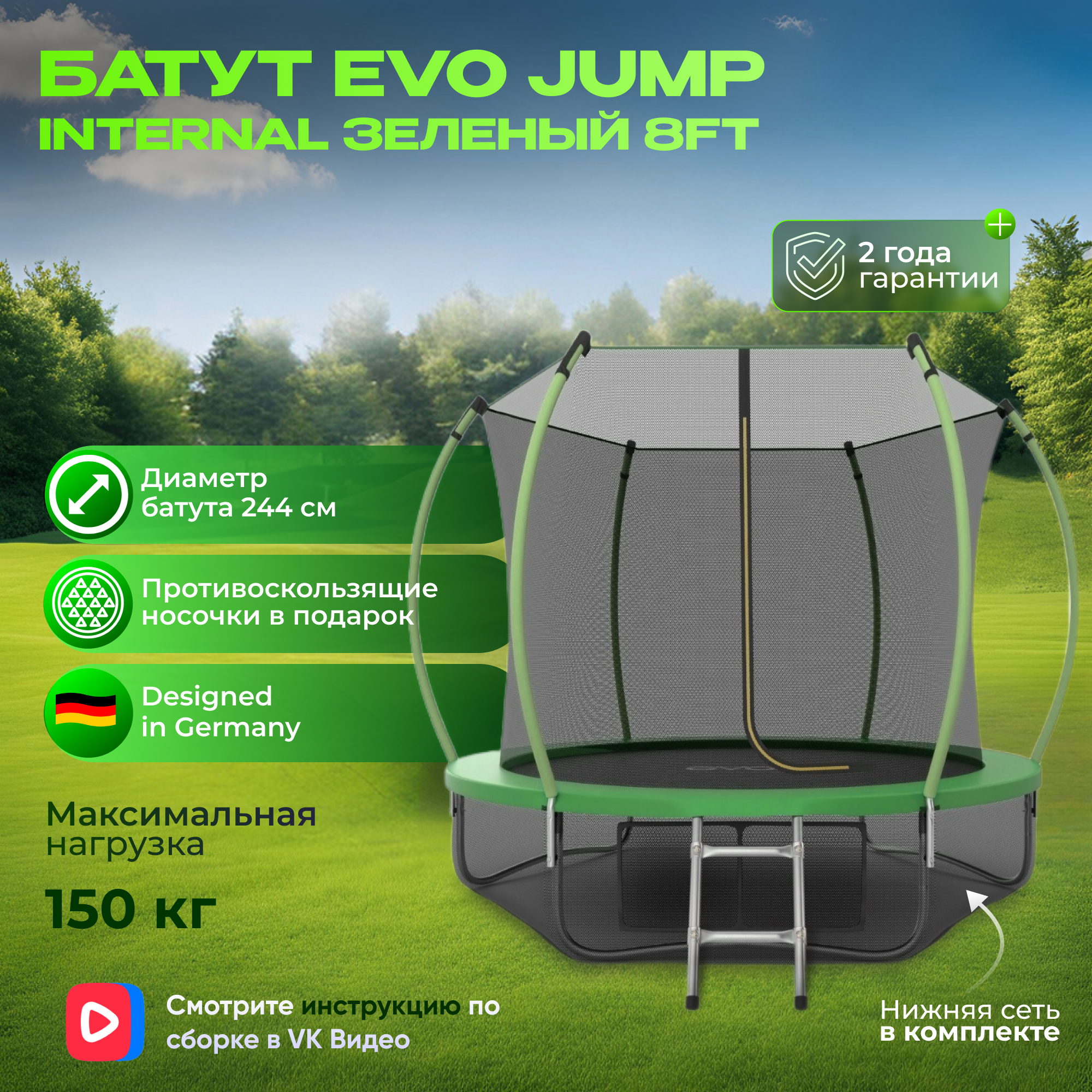 Батут EVO JUMP Internal 8ft (Green) c внутренней сеткой и лестницей + нижняя сеть + носочки информация: