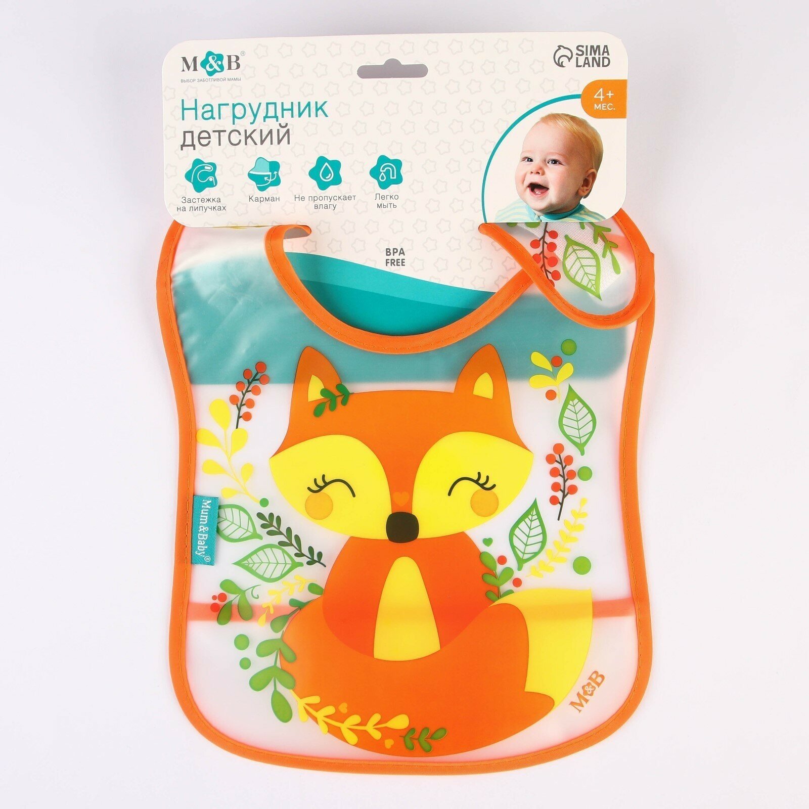 Нагрудник для кормления «Лисичка Соня» непромокаемый на липучке, с карманом информация: