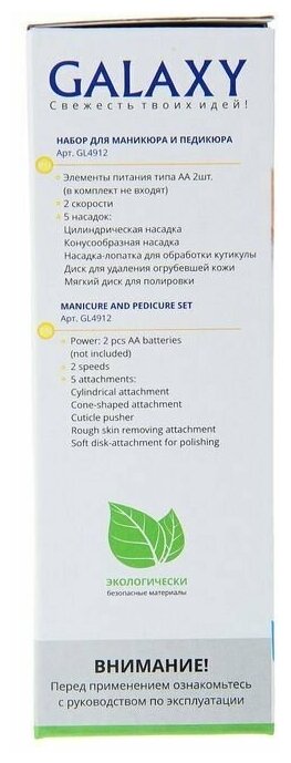 Набор для маникюра и педикюра Galaxy GL 4912. 2*АА. 2 скорости. 5 насадок