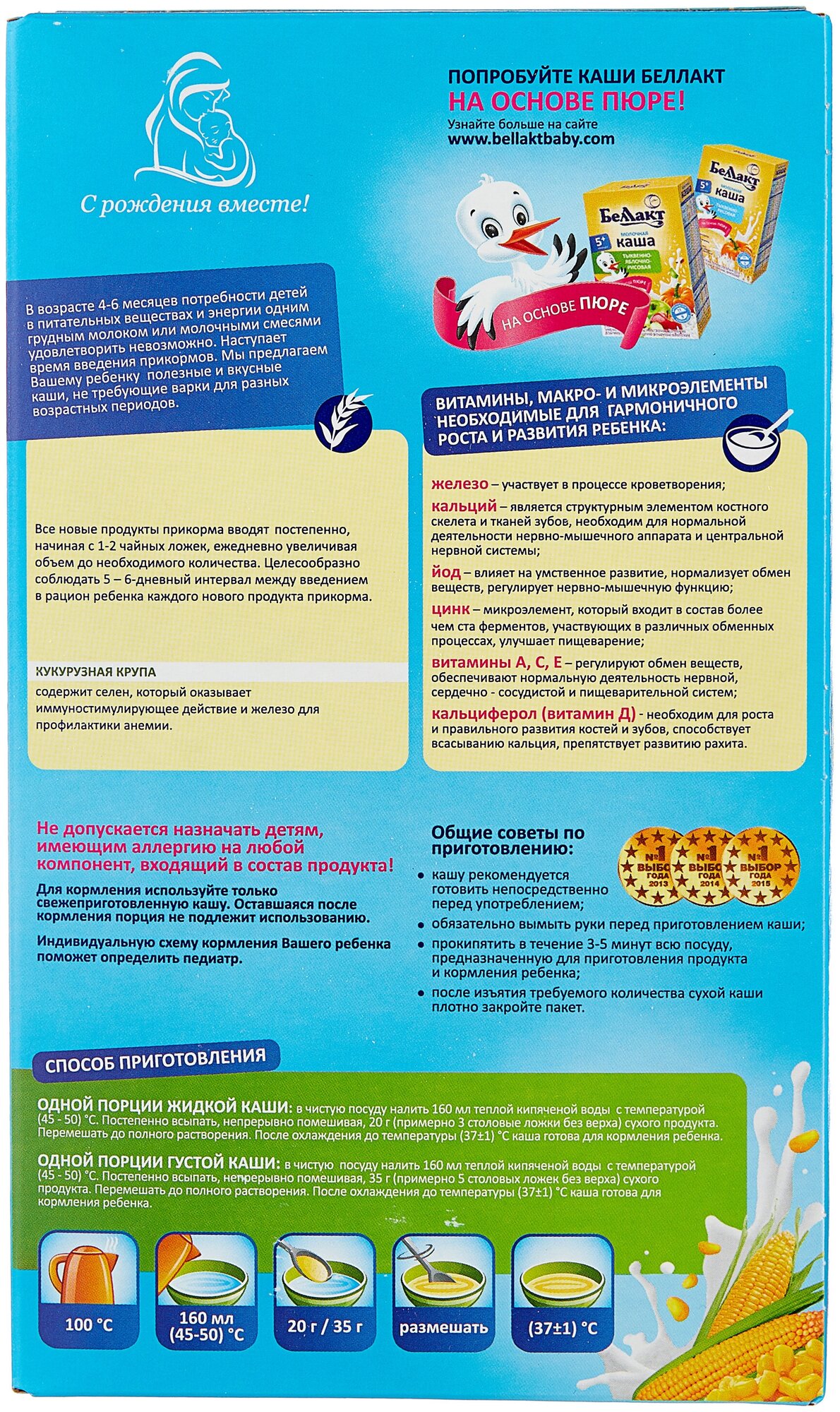 Беллакт каша молочная С кукурузной мукой 200 информация: