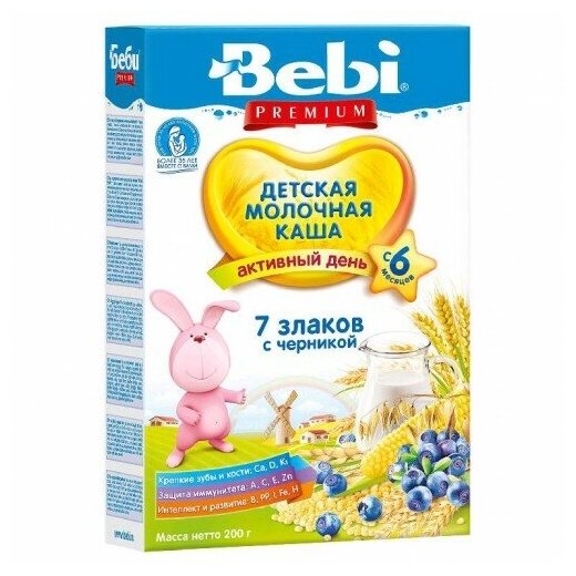Каша молочная Bebi Premium 7 злаков с черникой с 6 мес. 200 г информация: