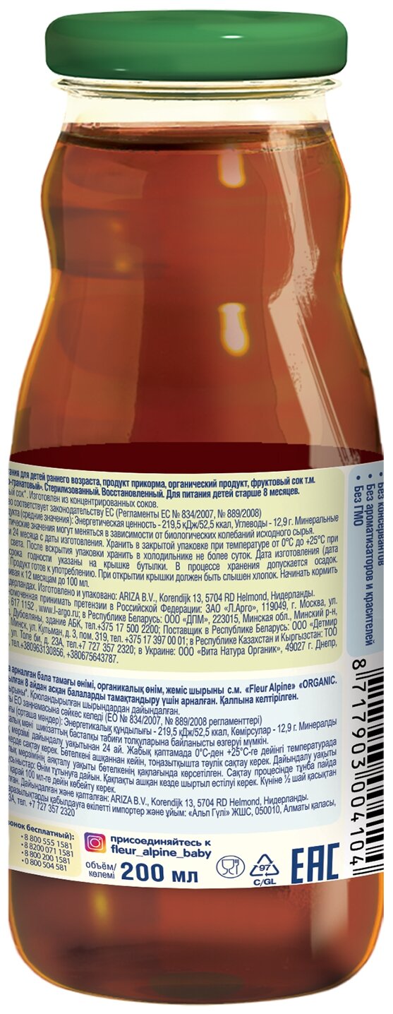 Спайка Сок детский Fleur Alpine Яблочно-гранатовый, с 8 месяцев, 8 шт. по 200 мл информация: