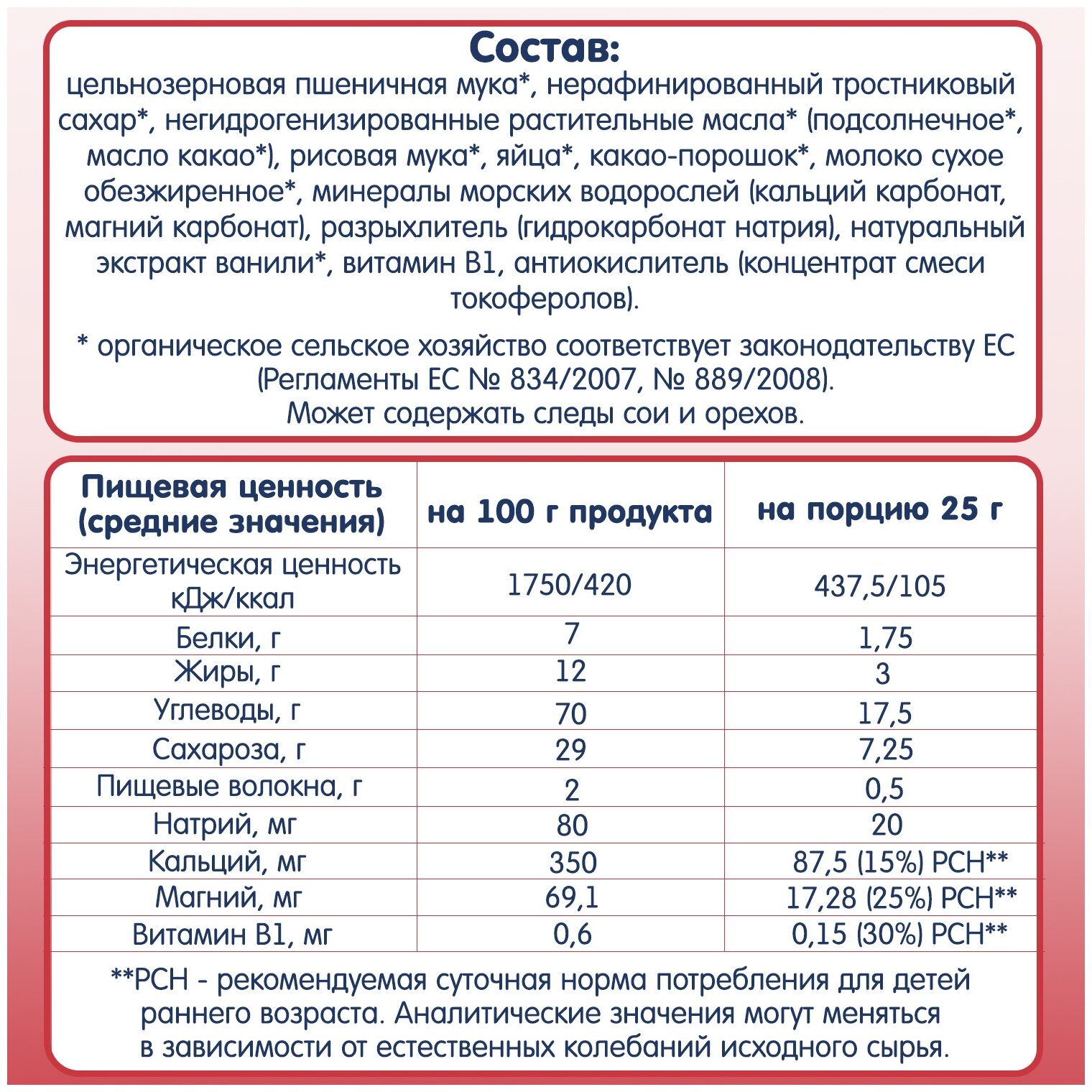 Печенье детское Fleur Alpine Органик "Какао", 9 мес., 150 г информация: