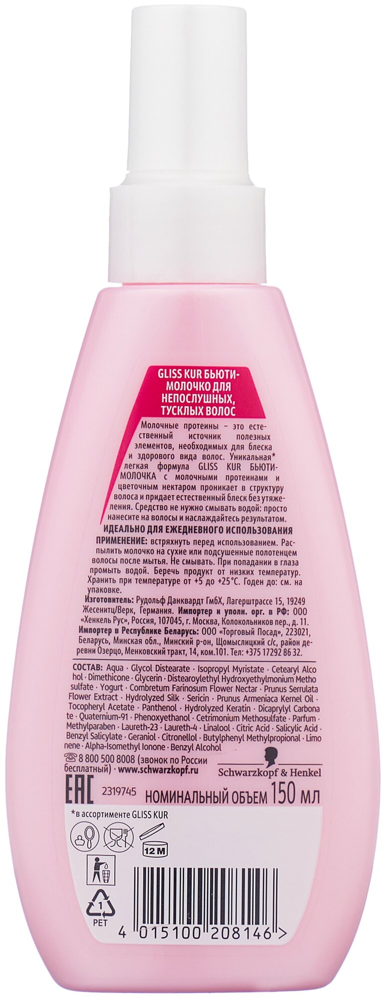 Бьюти-молочко для волос Gliss Kur Блеск (150 мл) информация: