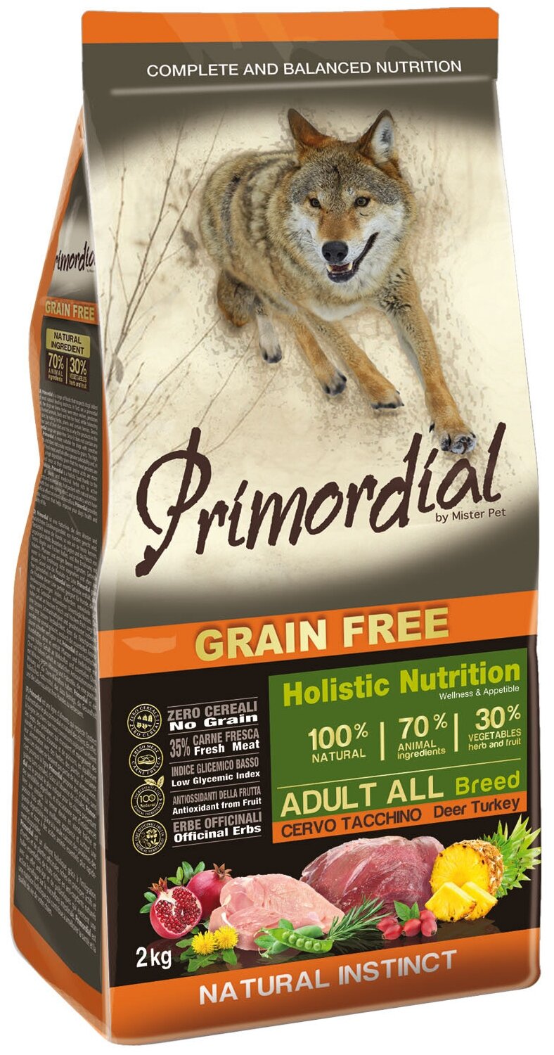 PRIMORDIAL ADULT ALL BREED беззерновой для взрослых собак всех пород с олениной и индейкой (2 кг)
