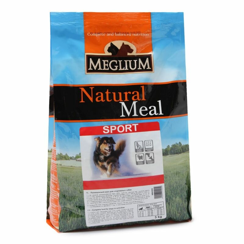 Корм Meglium Natural Meal Sport для активных собак, 3 кг