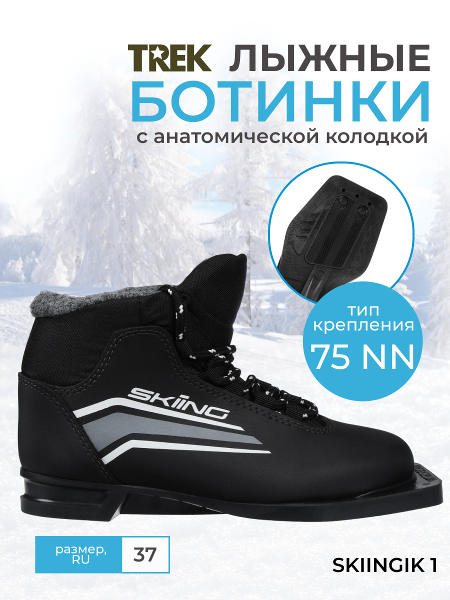 Ботинки лыжные TREK Skiing1 NN75 ИК, цвет чёрный, лого серый, размер 41 Trek .