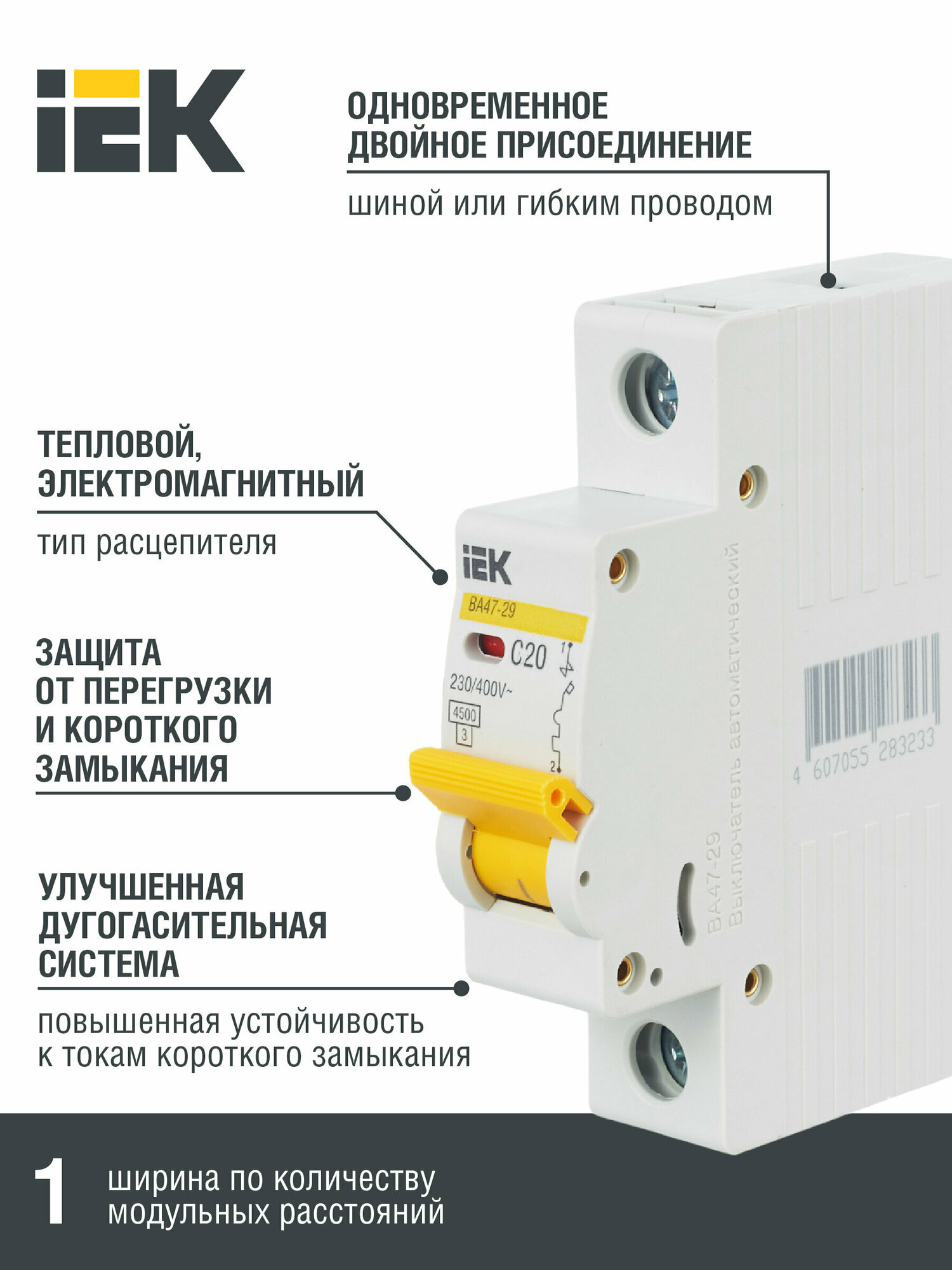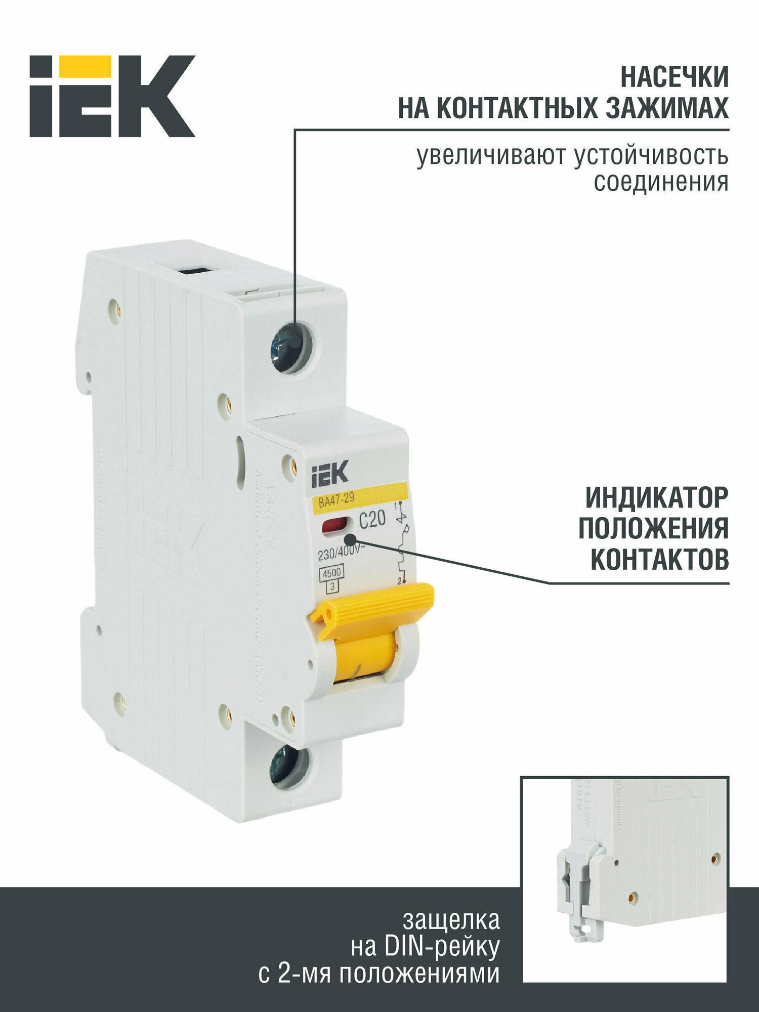 Автоматический выключатель IEK ВА 47-29 (C) 4,5kA 20 А информация: