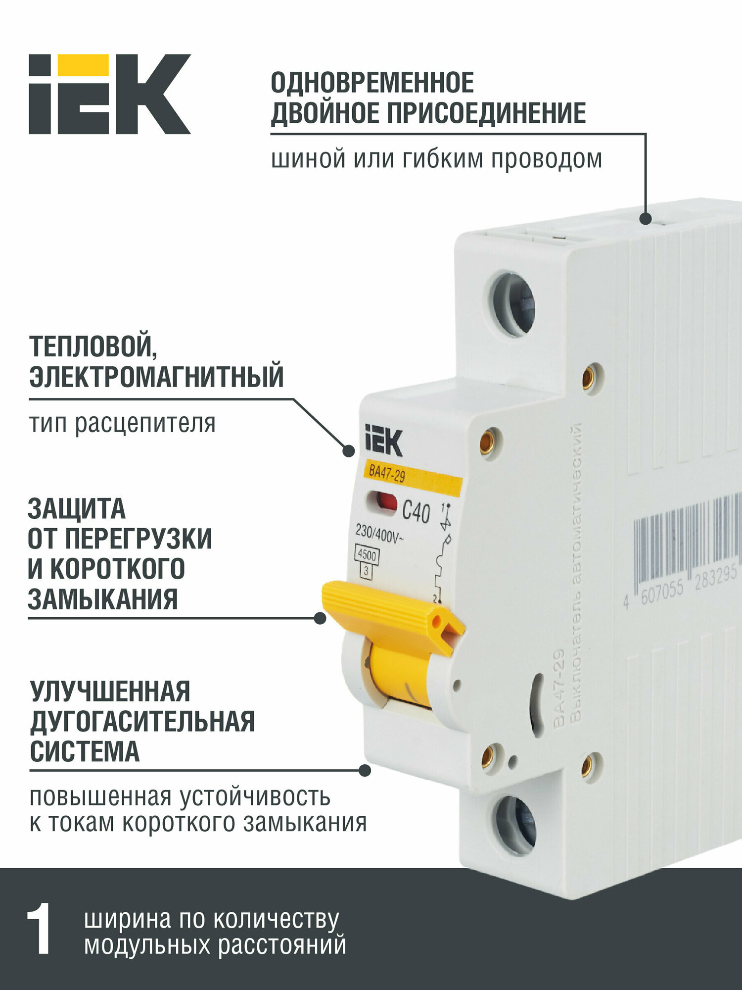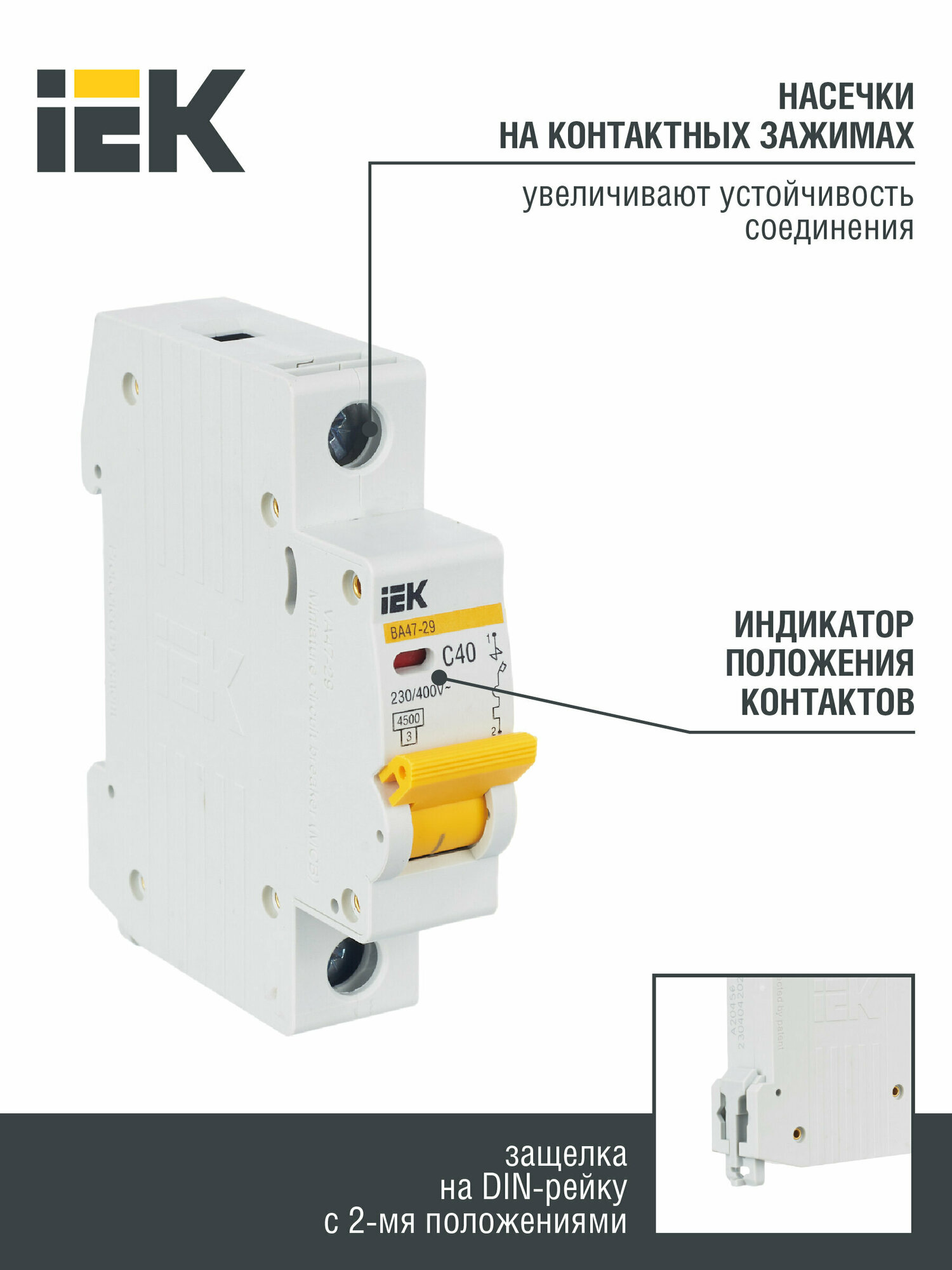 Автоматический выключатель IEK ВА 47-29 (C) 4,5kA 40 А информация: