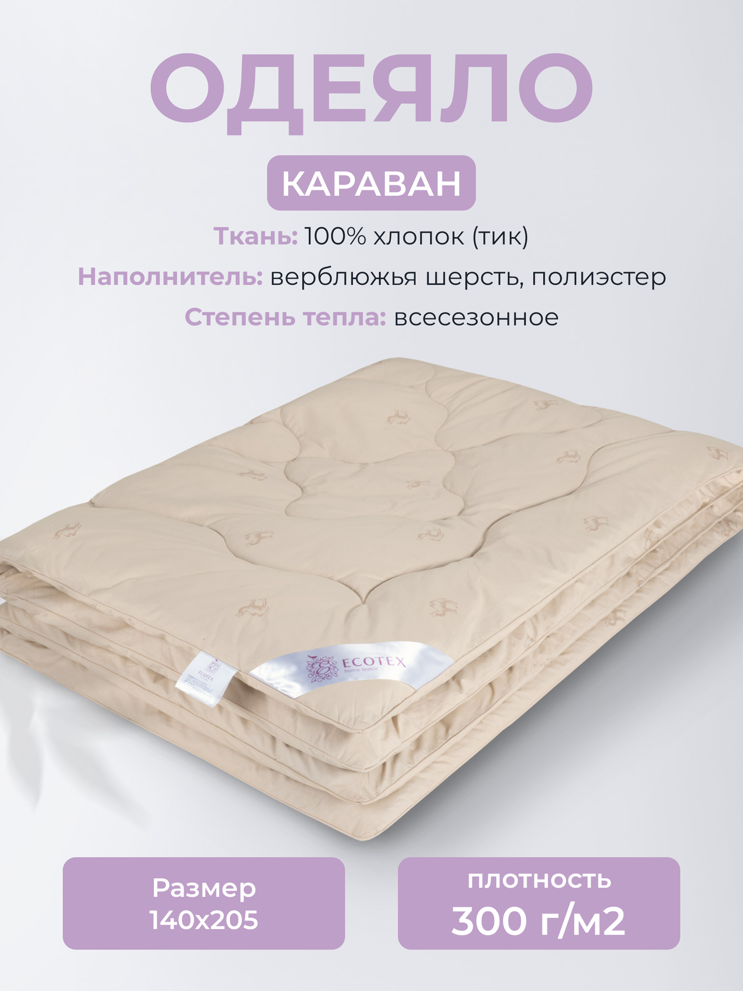 Одеяло Ecotex Караван (140х205 см), шерсть верблюда, всесезонное 5 480 ₽