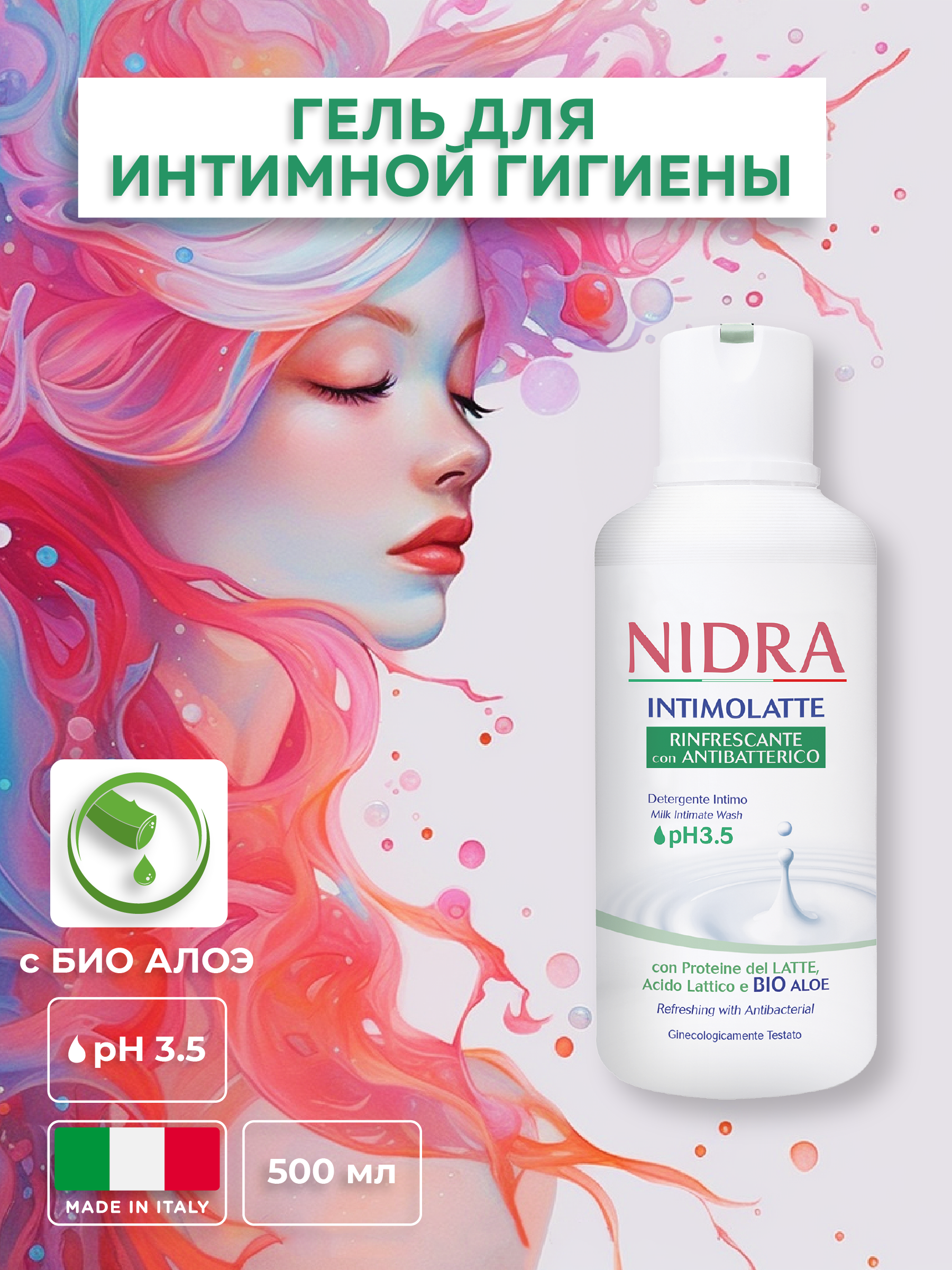 Гель для интимной гигиены Nidra освежающий с молочными протеинами и алоэ 500 мл информация: