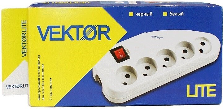 Сетевой фильтр VEKTOR Lite, 5 розеток, 1.8 м, б/з, 10А белый