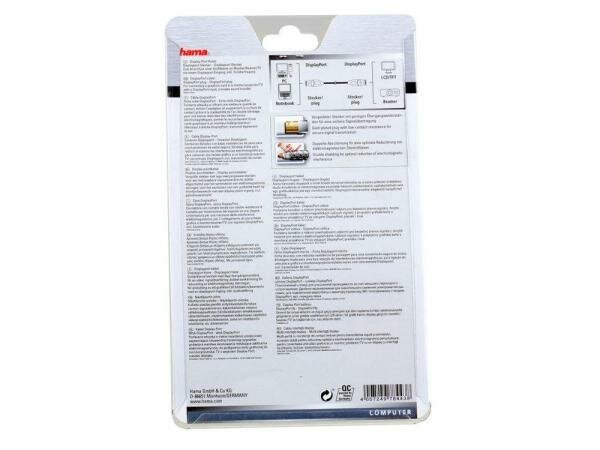 Шнур Displayport(M)-Displayport(M) Hama 1,8 м (00078442), HAMA, H-78442