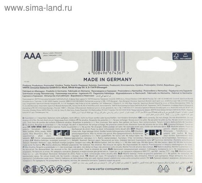 Varta Батарейки Energy AAA 4103213414 .