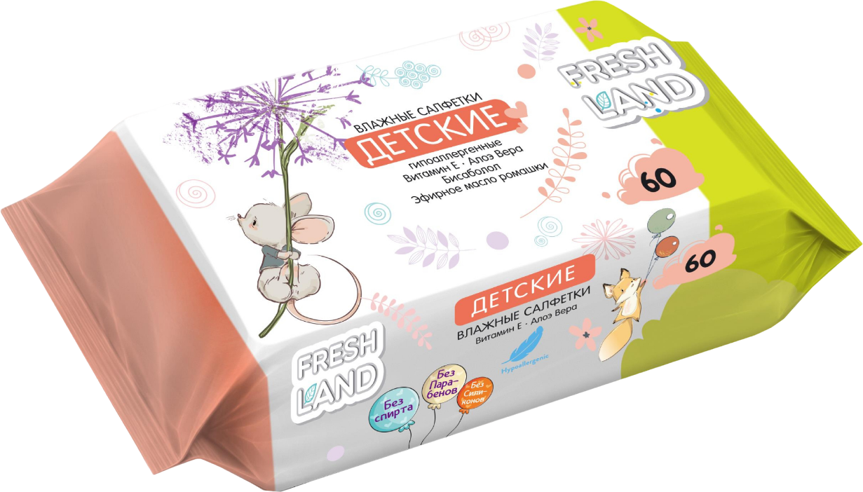 Влажные салфетки для детей Freshland , 60 штук в упаковке информация: